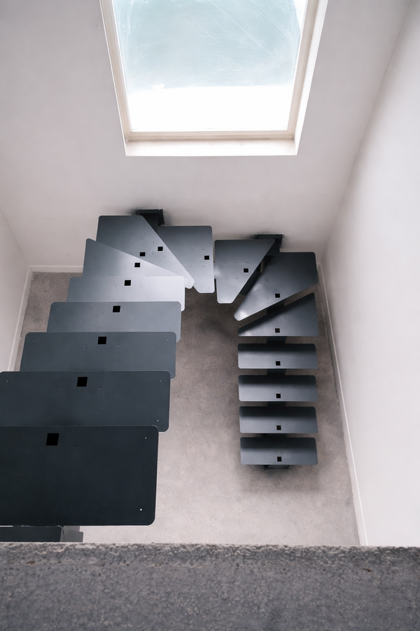 Мы столкнулись с задачей создания легкой конструкции из стали 8 мм с закрытым торцом под лестничным пространством, обшитым МДФ с лицевой стороны. Основные требования включали широкий подъем и устойчивость конструкции