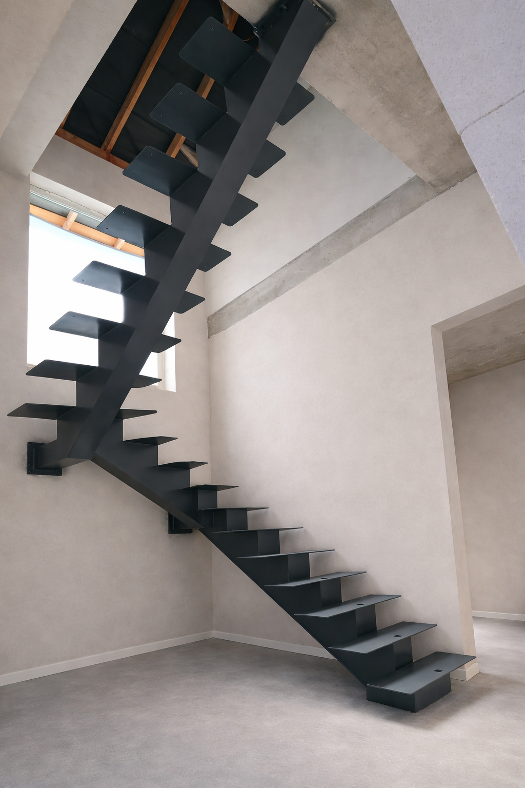 Инженерное решение для интерьеров, где важны визуальная лёгкость, архитектурная чистота и жёсткость конструкции. Несущая система полностью скрыта в стене, ступени работают как консоль — без опор, без подкосов, без компромиссов.