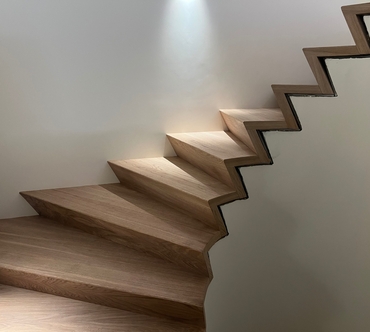 На винтовых лестницах внешний край ступени работает как фасад: его видно постоянно и в динамике. Узел “зуба” здесь является экзаменом всей системы.