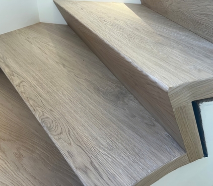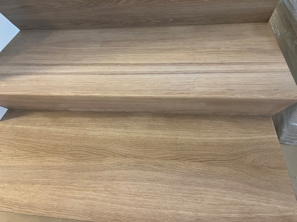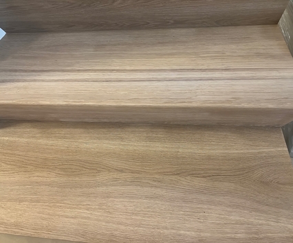 - шпон дуба 4.5 мм переходит с проступи на подступенок без стыка, единым полотном;
