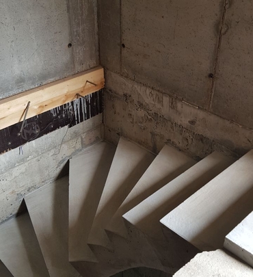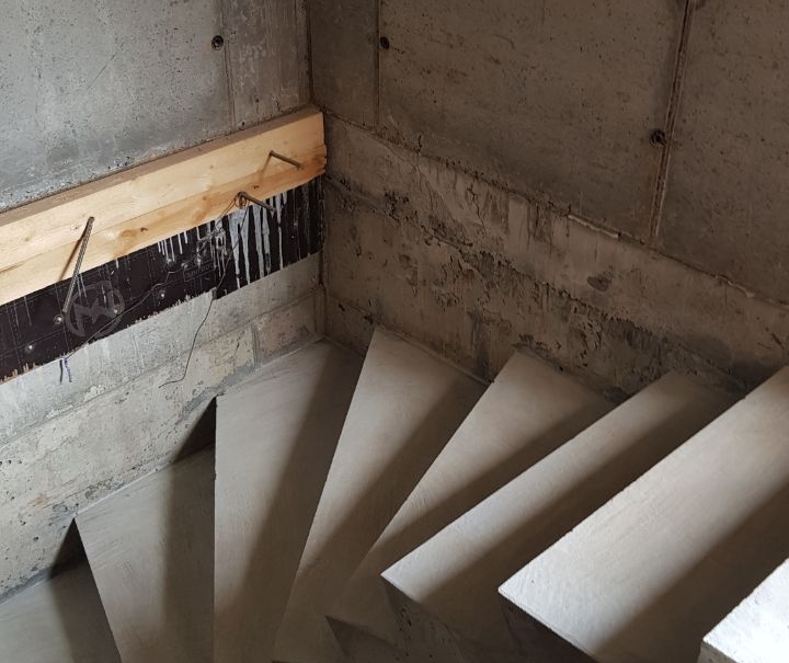 Здесь работает целая система: бетонный каркас, гидроизоляция, выравнивание основания, конструкция ступеней, геометрия поворота, стабильность материалов, финишная поверхность и будущие ограждения. Малейшая ошибка на любом этапе сразу начинает влиять на следующий. В результате лестница может выглядеть «вроде красиво», но при этом иметь перекосы линий, сбитый ритм ступеней и визуальную тяжесть конструкции.